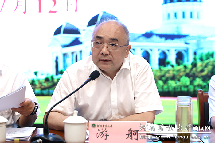 校纪委书记、监察专员游舸对《中共河南农业大学委员会贯彻落实省委第十四巡视组反馈意见整改工作方案》《中共河南农业大学委员会落实省委第十四巡视组选人用人专项检查反馈意见整改工作方案》《十一届省委第一轮巡视意识形态工作责任制专项检查反馈意见整改工作方案》进行了解读。