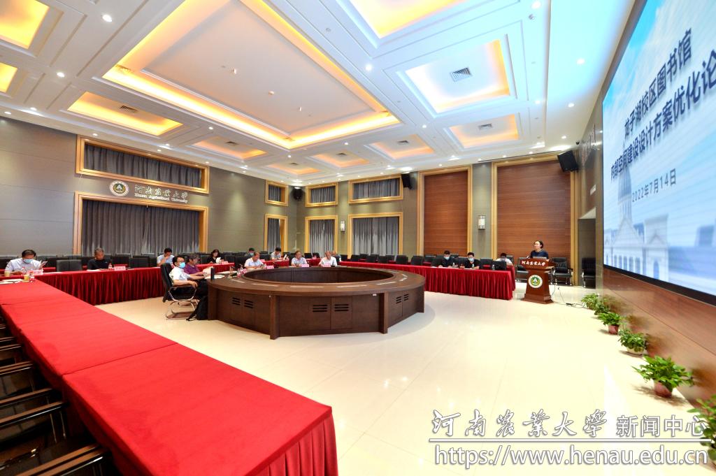 本网讯(通讯员 许婧雯 图片 谢东明)7月14日上午,学校在龙子湖校区召开龙子湖校区图书馆内部空间建设设计方案优化论证会。校长介晓磊,副校长尚富德、杨喜田、林同保,学术副校长王道文出席会议。学校相关职能部门负责人,校图书工作委员会委员、专家、中标企业代表等参加会议。