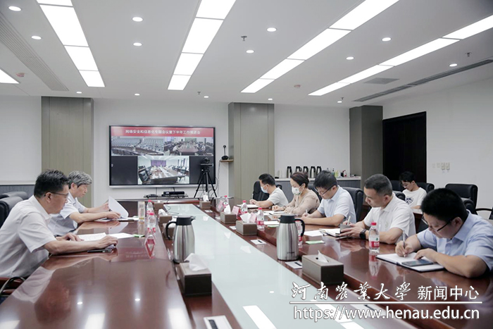 本网讯(通讯员 田飞)8月16日,副校长杨喜田在龙子湖校区主持召开网络安全与信息化专题会议暨下半年工作推进会。党委办公室、党委宣传部、党委保卫部、校长办公室、信息化办公室以及许昌校区等相关单位负责人参加会议。会议通过视频方式在文化路校区和许昌校区分会场同步进行。