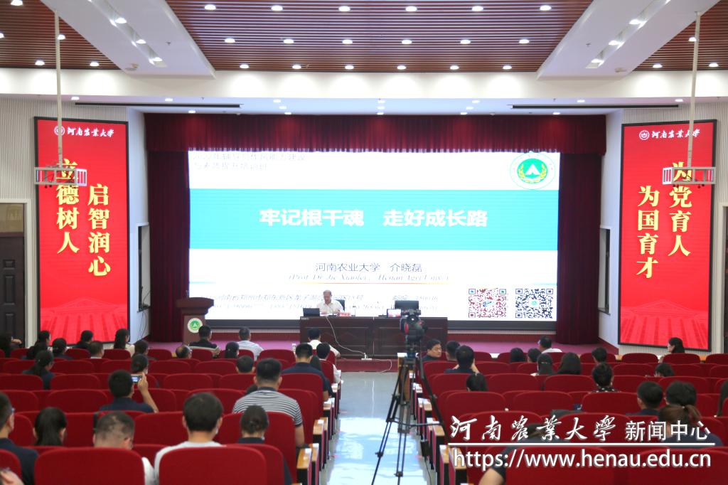 介晓磊认真听取了培训班学员代表发言,观摩了结对帮扶仪式和宣誓仪式,他以《牢记根干魂 走好成长路》为题作专题报告,深刻阐明了影响个体进行自我成长、自我实现和创造价值的诸多要素。他指出,大学是社会生态系统中一个“类生命体”,包含着生存、发展、壮大等因素;大学自身就是一个开放协同的“生态系统”,由人才、团队、学科、学院等部分组成;大学也是一个有文化底蕴的“泡菜坛子”,拥有校风、教风、学风、作风等多种优良的文化基因;辅导员有着自然人、社会人、职业人多重身份,辅导员工作的出发点是用“思想的教育”实现“教育的思想”,着力点是以“使命的教育”实现“教育的使命”,落脚点是以“教育的行为”实现“行为的教育”。他寄语全体辅导员一是要遵循人的成才规律、人的生命规律、人生发展规律;二是要坚持目标导向、问题导向、产出导向;三是要重视顶层设计、转变转念、有效执行、评估优化。