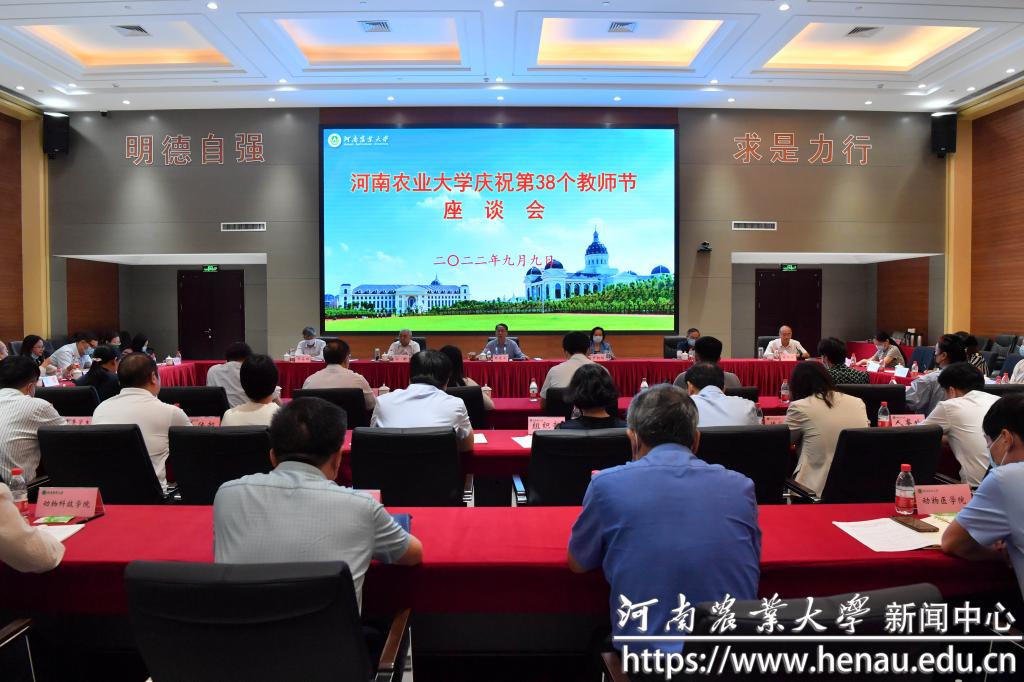 本网讯(记者 陈玺)9月9日上午,学校在龙子湖校区举行庆祝第38个教师节座谈会。校领导魏蒙关、尹新明、游舸、尚富德、杨喜田、林同保出席会议,与教师代表亲切座谈,畅谈教书育人初心,共话立德树人大计。相关职能部门和学院负责人参加座谈会。副校长林同保主持会议。