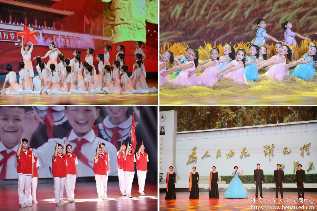 参演的师生来自小学、中学、高校各学段,分别带来了歌舞《妈妈教我一支歌》、舞蹈《我从麦田里走来》、情景剧《永不磨灭的印记》、歌曲《念奴娇·追思焦裕禄》、音诗画《我从丹江来》、歌舞《领航》等极具河南特色和思政育人元素的原创节目,活动现场掌声不断,线上直播点赞连连。