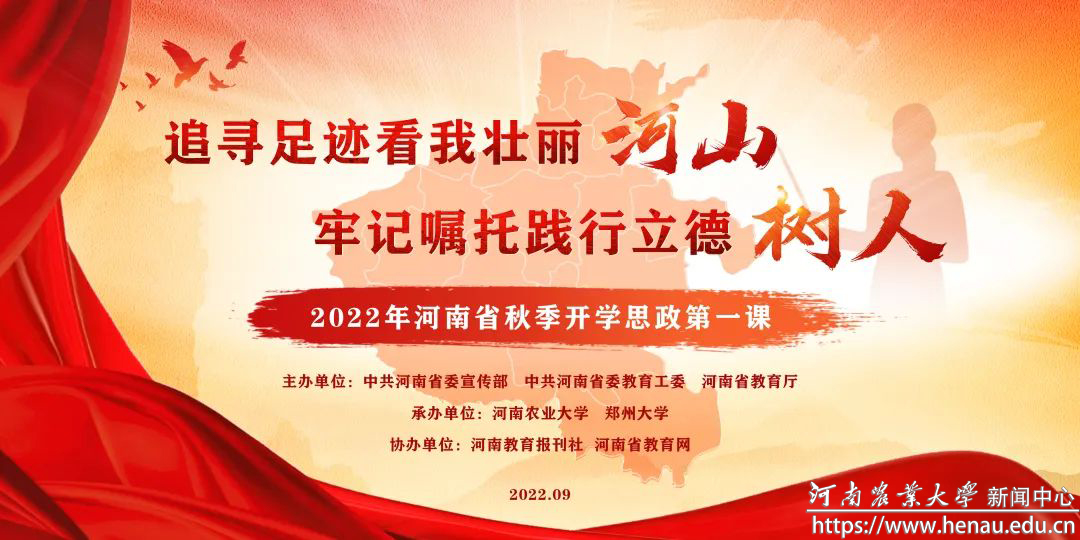 本网讯(记者 孙慧敏 杨钰晨 图片 李洪振 裴辉)9月15日,“追寻足迹看我壮丽河山,牢记嘱托践行立德树人”2022年河南省秋季开学思政第一课在我校英林讲堂开讲。此次活动中共河南省委宣传部、中共河南省委教育工委、河南省教育厅主办,河南农业大学、郑州大学承办,河南教育报刊社、河南省教育网协办。全省329.3万师生线上线下同步收看这堂思政大课,点赞量超过1.5亿。