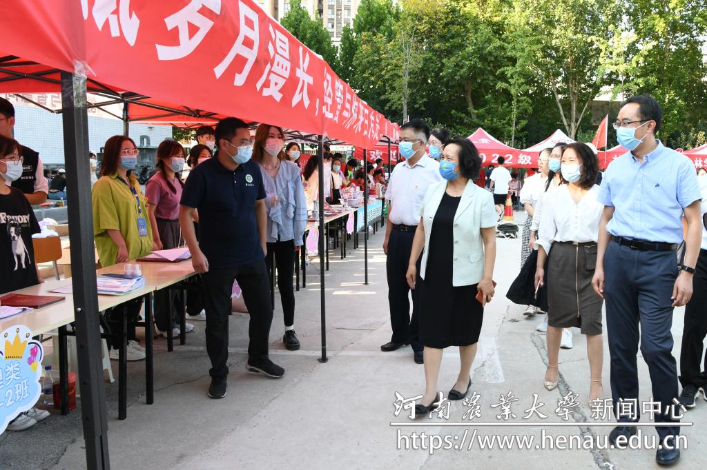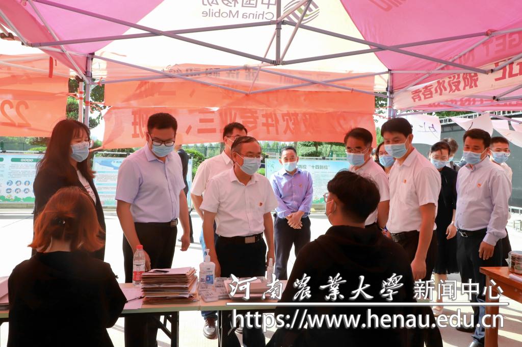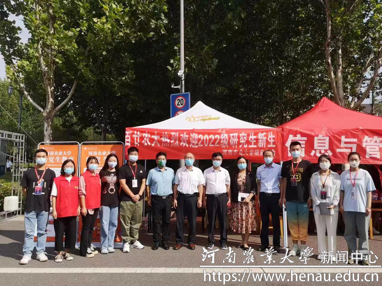 本网讯(通讯员 乔蓓蕾 王朝杰 图片 陈玺 李洪振 杨钰晨 刘久立)秋风送爽,丹桂飘香。9月18日至19日,我校2022级本科生和研究生从全国各地奔赴而来,正式成为新一批光荣的“农大人”。校党委书记魏蒙关,副校长尹新明、尚富德、林同保分别到龙子湖校区、文化路校区和许昌校区迎新现场,看望迎接2022级新同学,并向忙碌在现场一线的师生员工表示慰问。