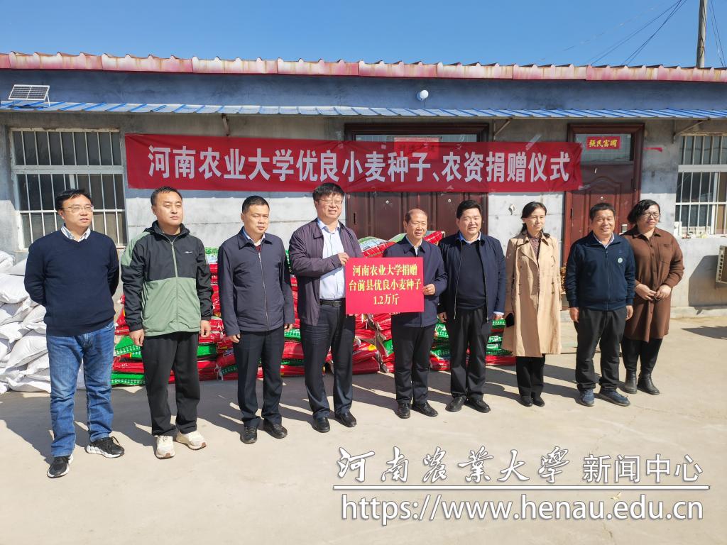 校长介晓磊代表学校向台前县捐赠小麦良种、农资等