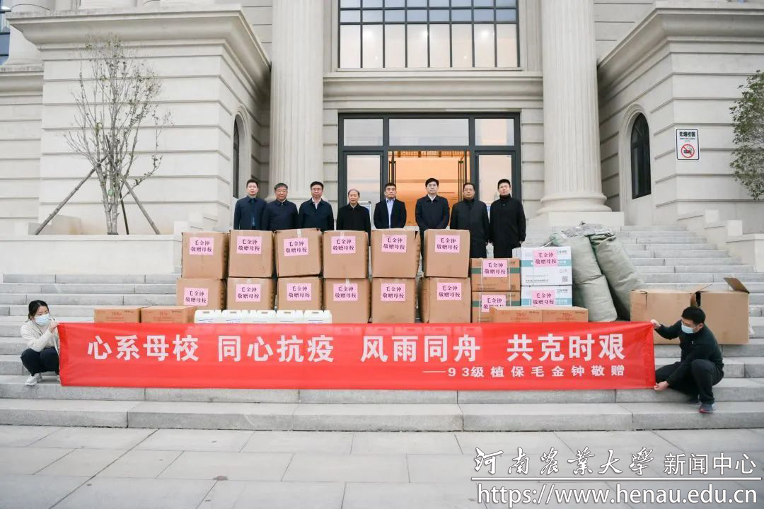 介晓磊对校友毛金钟的及时帮助表示感谢。他指出,在这个特殊时刻收到校友捐赠的防疫物资,犹如一场及时雨,让学校师生倍感温暖,深受感动,这些物资也将极大地缓解奋战在学校抗疫一线工作人员的实际困难,此举也充分体现了校友们心系母校、感恩母校的真挚情谊和关爱社会、回馈社会的美好情怀,展现了河南农业大学校友的责任与担当。