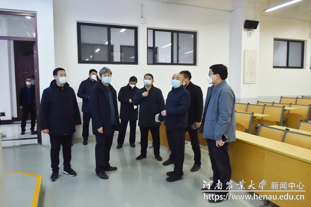 本网讯(记者 李洪振)2月10日下午,在新学期开学前夕,校党委副书记游舸,副校长杨喜田、郭战伟带领各职能部门负责人,认真查看新学期开学准备工作情况。