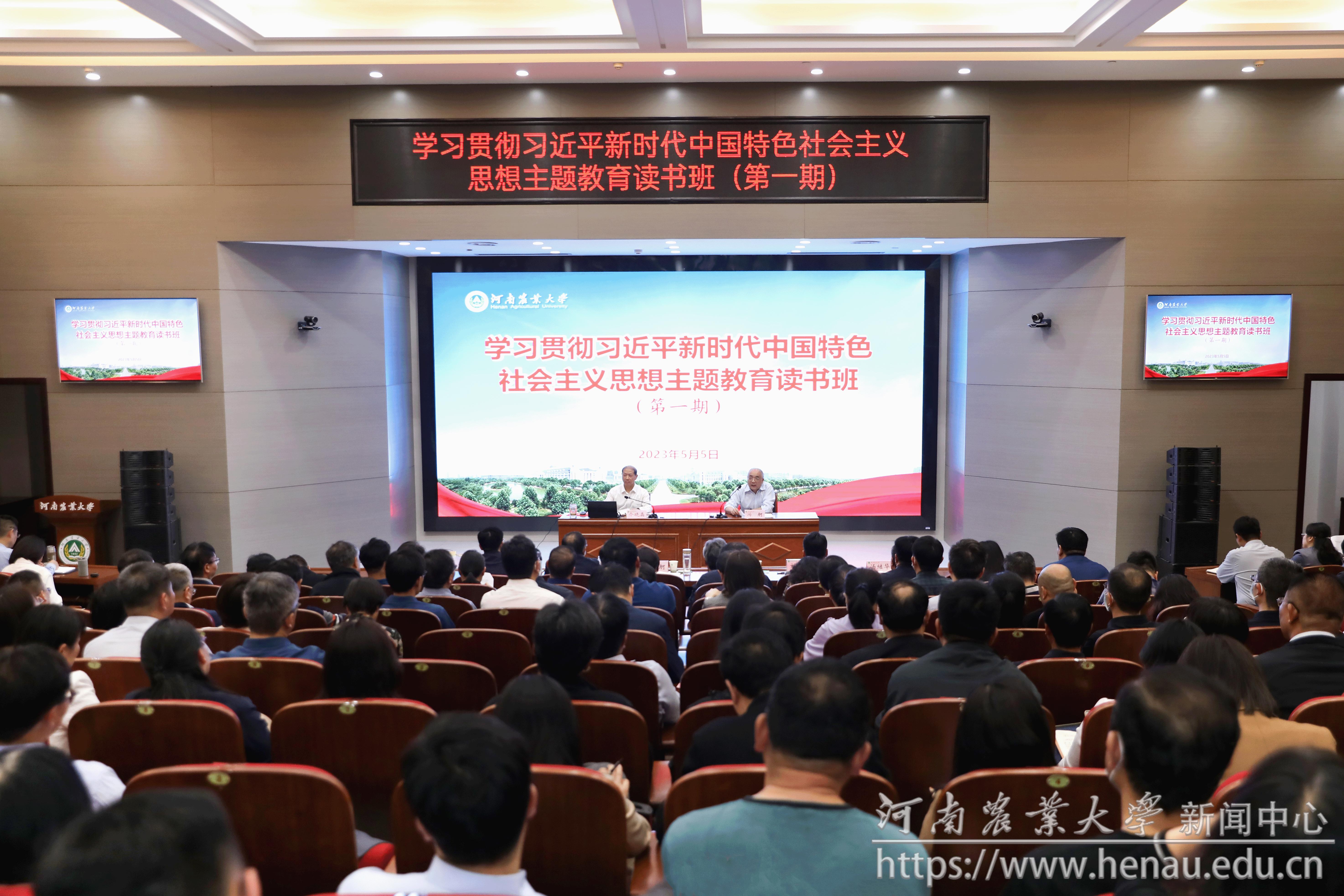 本网讯(通讯员 赵娅楠 图片 黄璞)5月5日,学校学习贯彻习近平新时代中国特色社会主义思想主题教育读书班第一期开班,校党委副书记、校长介晓磊作专题党课,校党委副书记游舸主持会议。全体校领导、全校处级干部参会。