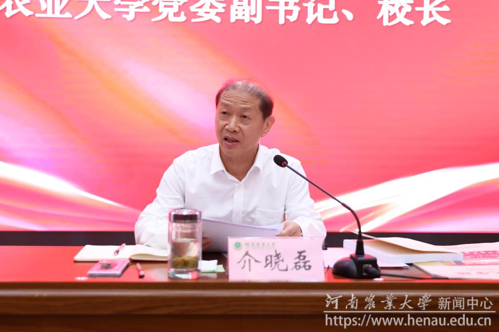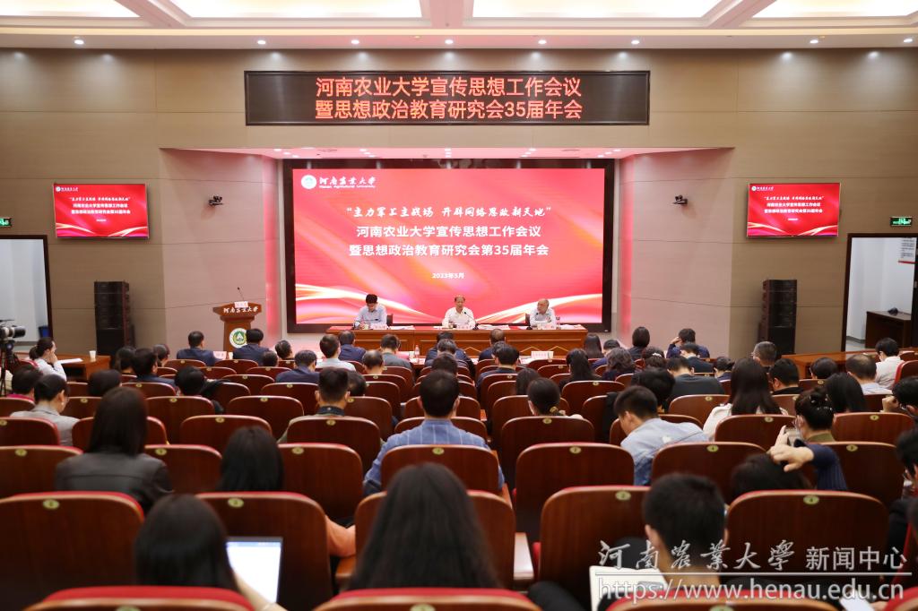 本网讯(记者 黄婉珺 黄璞 图片 李洪振)5月10日,学校召开2023年度“主力军上主战场 开辟网络思政新天地”河南农业大学宣传思想工作会议暨思想政治教育研究会第35届年会。校党委副书记、校长介晓磊,党委副书记游舸,副校长郭战伟出席会议。校宣传思想文化工作领导小组成员单位负责人,各基层党委(党总支)书记、副书记,全体政工干部,青马社团学员代表和获奖师生代表等参加会议。会议由游舸主持。