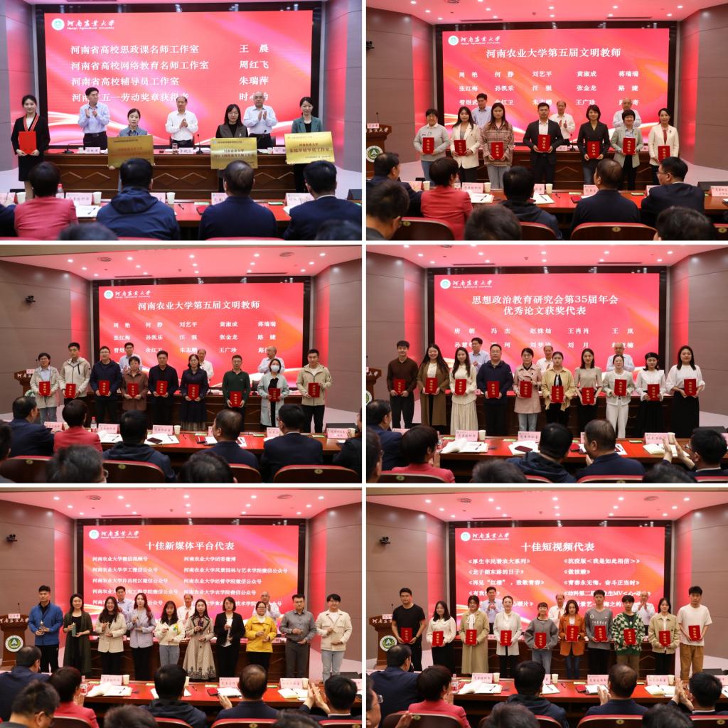 郭战伟宣读了河南省高校思政课名师工作室、网络教育名师工作室、辅导员工作室和“河南省五一劳动奖章”获评情况及《关于表彰“主力军上主战场 开辟网络思政新天地”全校宣传思想工作会议暨思想政治教育研究会第35届年会优秀论文及优秀组织单位的决定》《关于表彰河南农业大学第五届文明集体、文明家庭、文明个人的决定》《关于对河南农业大学 2022 年度融媒体建设成果表彰的决定》等表彰文件。