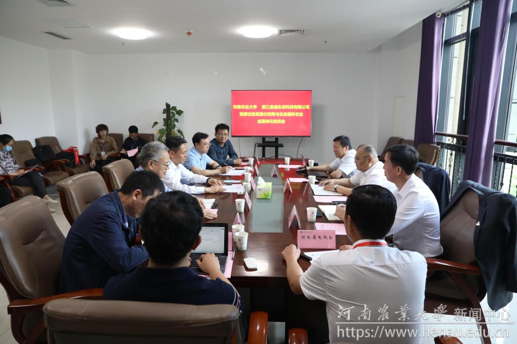 本网讯(通讯员 裴亚欣)6月1日,学校在龙子湖校区与浙江启迪生态科技有限公司就“餐厨垃圾资源化利用与生态循环农业成果转化”洽谈合作事宜。副校长刘晓永、公司董事长程新钢出席会议。公司相关部门、社会服务处、生命科学学院负责人及相关专家参加会议。