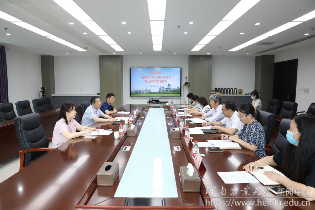 本网讯(通讯员 刘君丽 图片 黄璞)6月12日下午,河南省财政厅国库支付局局长孙久强一行三人到我校调研指导财政资金国库集中支付工作。副校长杨喜田,财务处班子成员及相关科室负责人参加会议。