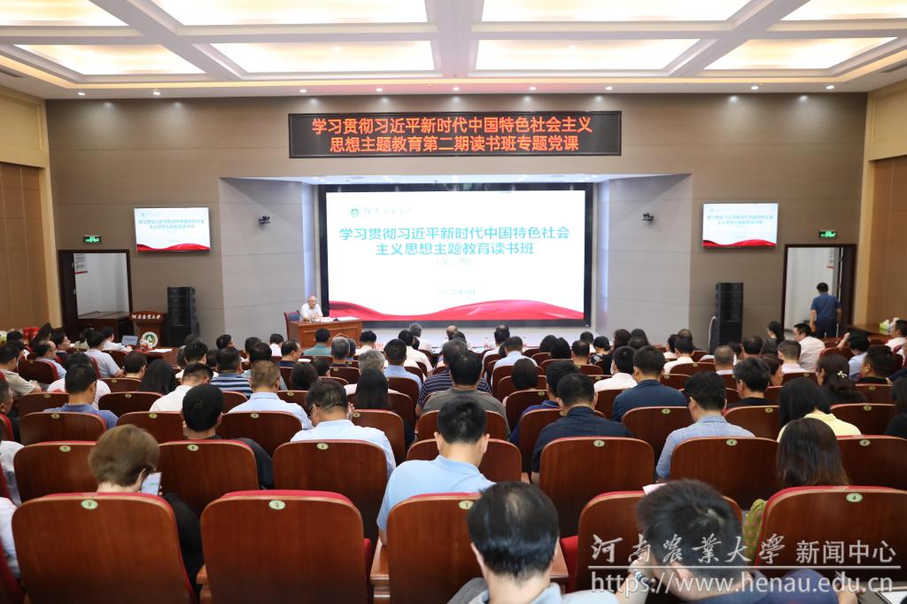 本网讯(记者 黄婉珺 图片 黄璞)根据学校学习贯彻习近平新时代中国特色社会主义思想主题教育第二期读书班课程安排,6月21日,校党委副书记游舸作专题党课。全体校领导、全校处级干部参加。