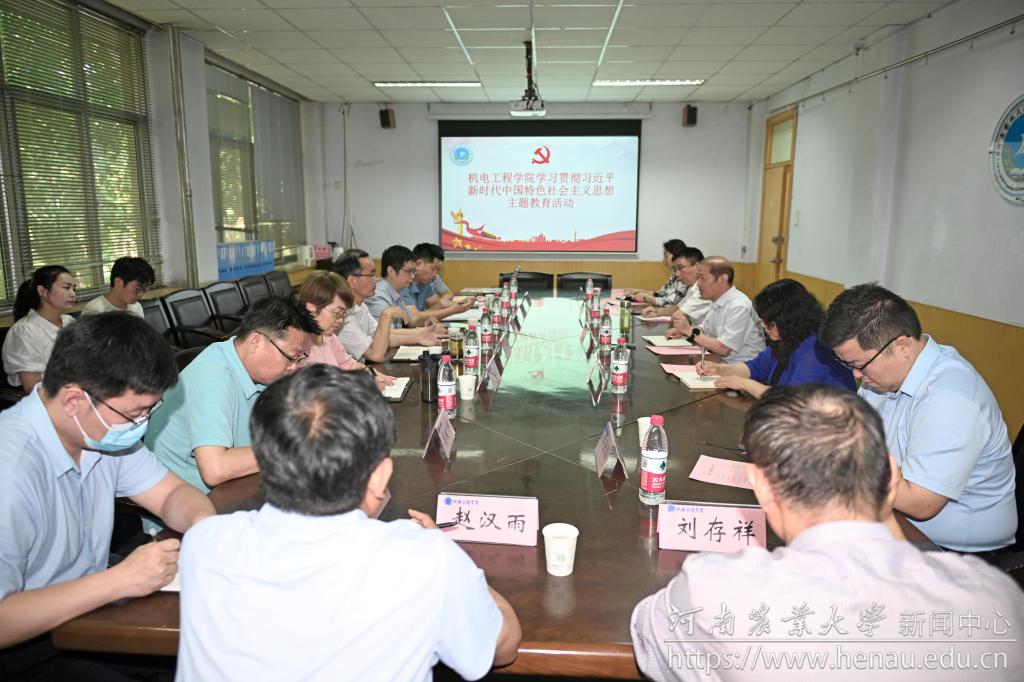 本网讯(通讯员 王晓楠 图片 杨钰晨)为扎实推进学习贯彻习近平新时代中国特色社会主义思想主题教育,6月30日上午,校长介晓磊带队到机电工程学院开展主题教育专题调研。校纪委、校长办公室、离退休职工工作处、经济与管理学院有关负责人陪同调研。机电工程学院班子成员、各系室支部书记及教师代表参加调研座谈会。