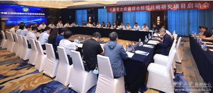 本网讯(通讯员 王瑞琳)7月8日,由河南农业大学教授、龙湖现代免疫实验室主任张改平院士主持的中国工程科技发展战略河南研究院咨询研究重大项目“生猪重大疫病综合防控战略研究”启动会和中国工程院咨询研究一般项目“我国畜牧业生物安全防控战略研究”中期推进会在郑州召开。会议开幕式由中国工程科技发展战略河南研究院副院长韩一帆主持,项目论证会由中国工程院院士陈焕春主持。河南省政协副主席、中国工程院院士刘炯天,中国工程院三局副局长黄海涛,河南省科技厅厅长张锐,河南省科学院执行院长宋克兴,河南农业大学校长介晓磊,河南省科技厅副厅长潘刚,郑州大学副校长赵明皞及河南省科学技术协会等单位负责人出席开幕式。