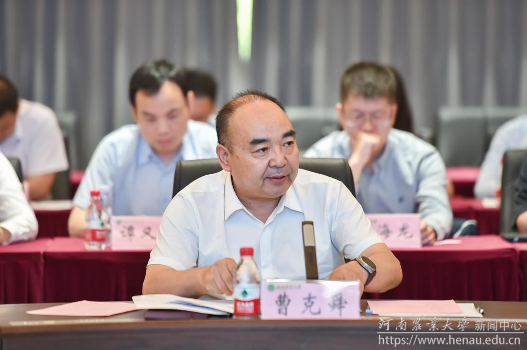 曹克舜首先向曹建农等多位科研团队负责人和各高校代表表示欢迎。他指出,河南作为人口大省、教育大省,近年来河南省委、省政府高度重视教育事业发展,特别是高等教育改革发展,把实施“创新驱动、科教兴省、人才强省”战略摆在“十大战略”之首,成立由省委书记、省长担任双主任的省科技创新委员会,着力打造国家创新高地和全国重要人才中心,积极推进全省高校布局、学科学院和专业设置“三个调整优化”,带动全省高等教育办学质量整体提升。近年来,省教育厅通过设立联合培养研究生专项招生计划、研究生质量提升工程项目等方式,鼓励和引导高校开展多种形式的研究生联合培养,推动人才链、教育链、产业链、创新链有机衔接、融合发展,不断提升研究生培养质量。