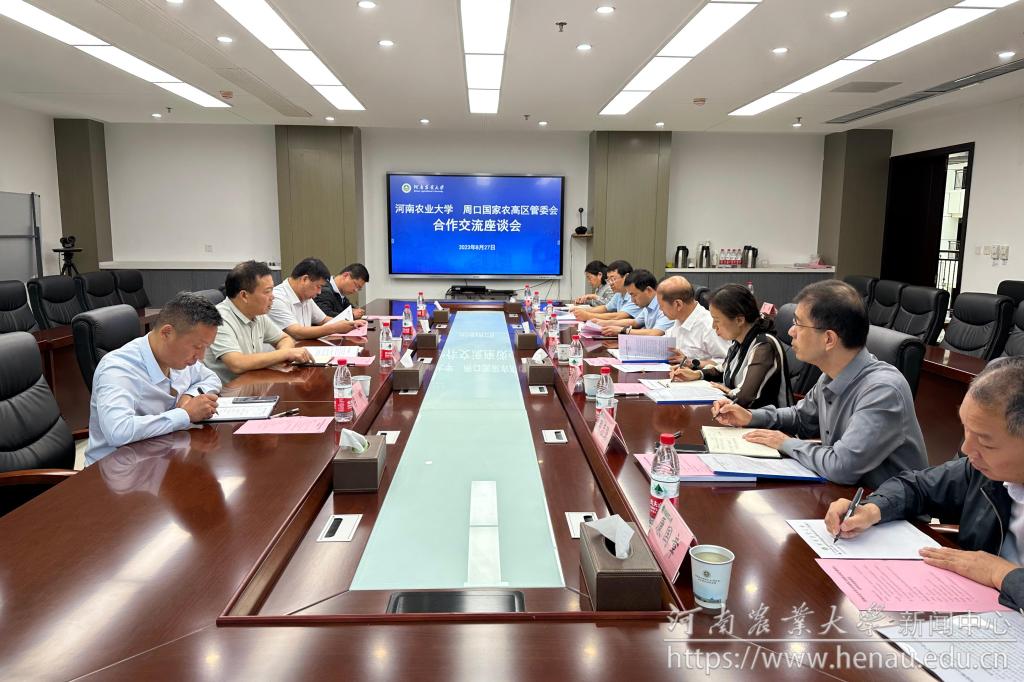 韩卫东及相关负责人对学校在周口国家农高区建设上给予的支持和帮助表示感谢,并介绍了周口国家农高区整体建设推进情况及周口市委市政府关于农高区建设的规划和设想,希望依托学校国家小麦技术创新中心、省部共建小麦玉米作物学国家重点实验室等国家级平台优势,进一步推进共建河南现代农业研究院等工作,为周口国家农高区建设提供强有力的科技支撑。