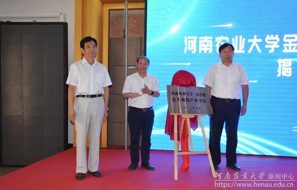 介晓磊、王俊忠与李宪挺共同为河南农业大学金沃野花生现代研究院揭牌。