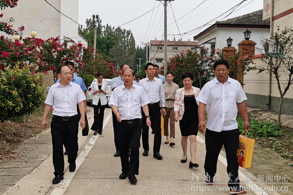 本网讯(通讯员 李坤 图片黄金峰)9月12日,校长介晓磊、副校长刘晓永一行深入我校定点帮扶村冯老村调研指导乡村振兴工作,并看望慰问群众和驻村第一书记。扶沟县县委书记孙红伟会见了介晓磊一行并进行了交流。扶沟县县委副书记张雪芳,大李庄乡党委书记丁俊邦等县乡相关负责人、村两委班子成员参加了调研活动。校长办公室、校工会、社会服务处和农学院等部门负责同志陪同调研。