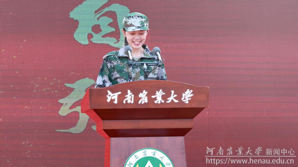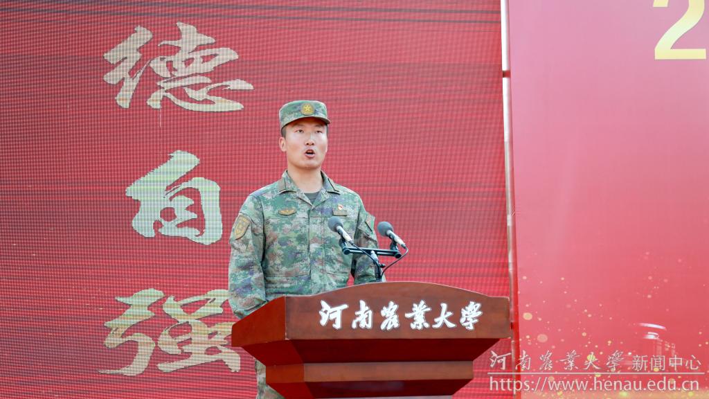 风景园林与艺术学院23级学生杨一佳作为参训学生代表发言,在军训过程中服从教官命令,团结同学,增强班级荣誉感,保持积极心态,享受苦与乐,认真完成军训任务。