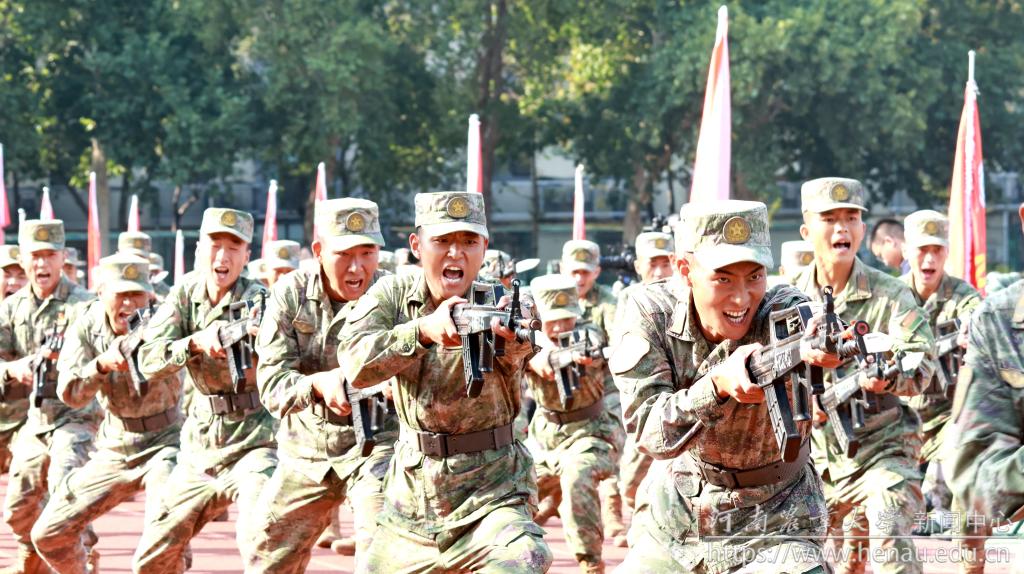 军训动员大会在军训教官整齐划一、杀声震天的分列式和刺杀操中拉开帷幕,军训教官们的刺杀操一方面展示了出色的军事技能和军人的血性胆气,另一方面也为新生上了一堂生动的军事技能大课。