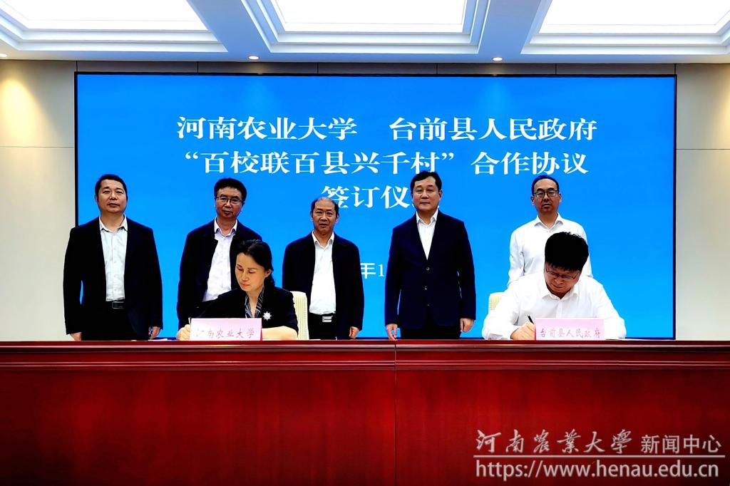 期间,双方代表共同签署了“百校联百县兴千村”行动合作框架协议,介晓磊代表学校向台前县捐赠了图书、小麦良种、复合肥料等物资。
