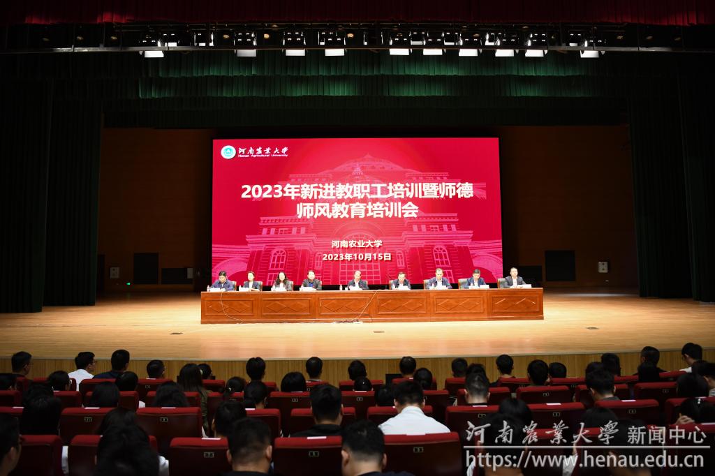 本网讯(通讯员 张文狮)为深入学习贯彻党的二十大精神,全面落实立德树人根本任务,10月15日,我校在龙子湖校区英林讲堂举行2023年新进教职工培训暨师德师风教育培训开班典礼。党委副书记、校长介晓磊,副校长尚富德出席开班典礼。相关职能部门负责人和2021年以来新入职的590名教师参加了典礼。