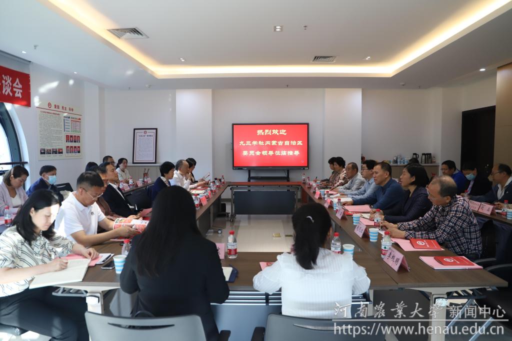 郭战伟代表学校致辞,介绍学校基本情况。他指出,九三学社河南农业大学委员会,主动融入党和国家事业发展大局,积极投身经济建设主战场,在抗击疫情、助力脱贫攻坚、服务乡村振兴、助推学校“双一流”创建等方面做出了积极贡献,在社务工作方面也取得优异成绩,连年获得九三学社中央表彰。希望以此次社务交流为契机,增进与九三学社内蒙古自治区委员会、九三学社河南省委员会的交流合作,为学校“双一流”创建聚智赋能。
