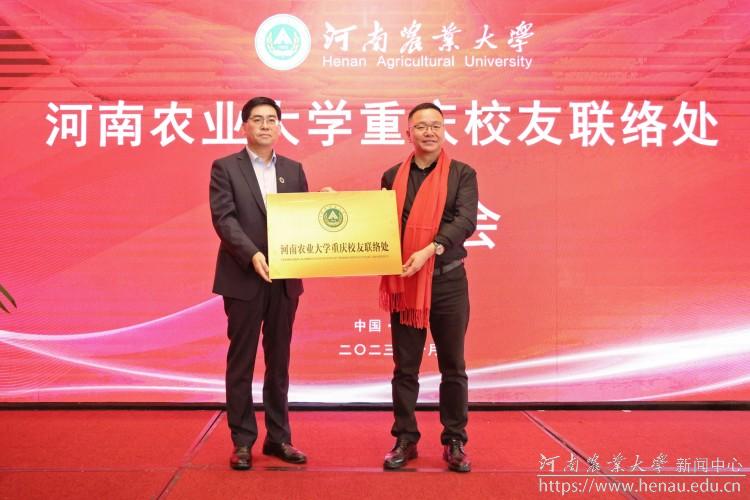 副校长郭战伟代表学校向重庆校友联络处授会牌