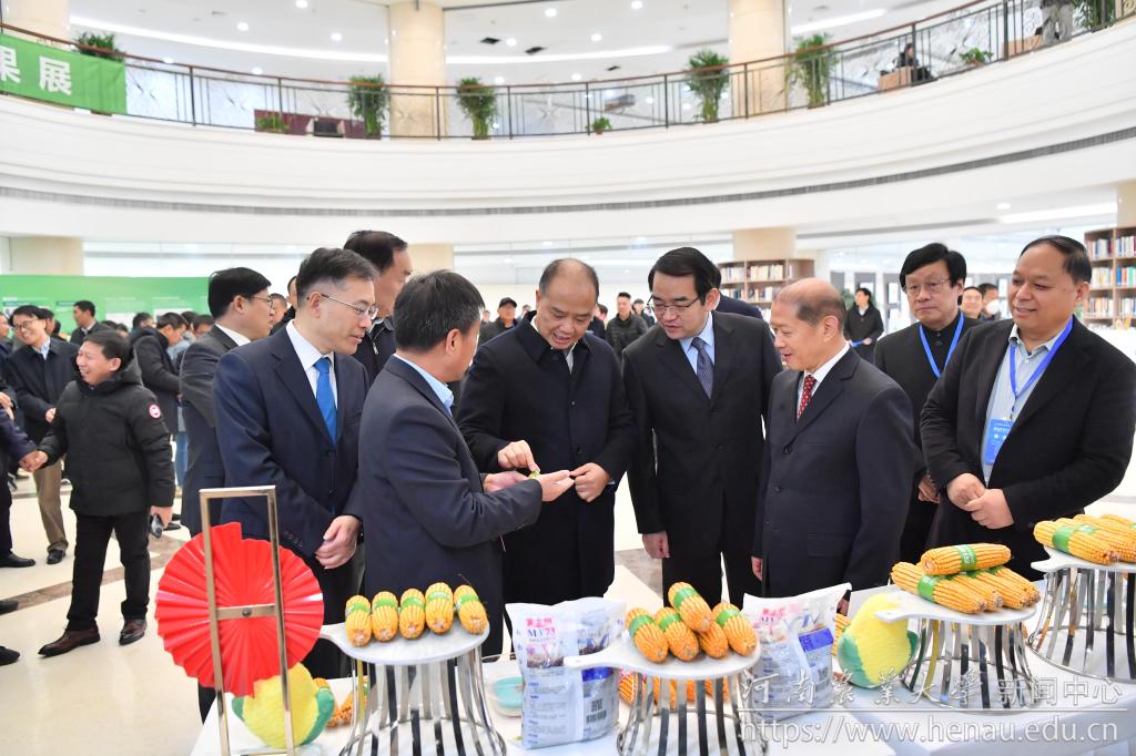 与会人员一同参观河南农业大学打造玉米“中国芯”、推动农业高质量发展成果展。