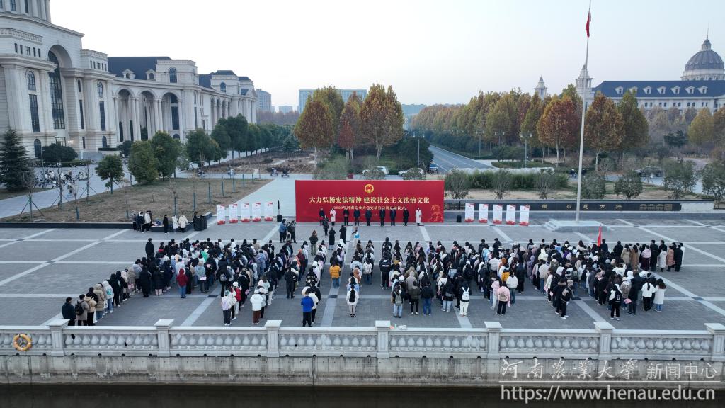 本网讯(通讯员 盛戈 图片 李洪振)12月4日,在我国第十个国家宪法日到来之际,我校在龙子湖校区举办“深入学习宣传习近平法治思想大力弘扬宪法精神”宪法宣传周启动仪式。校党委副书记游舸、副校长郭战伟出席启动仪式。党委宣传部、党委学工部、校团委、党委研工部、政策法规办等学校职能部门负责人,文法学院负责人和师生代表参加启动仪式。仪式由郭战伟主持。
