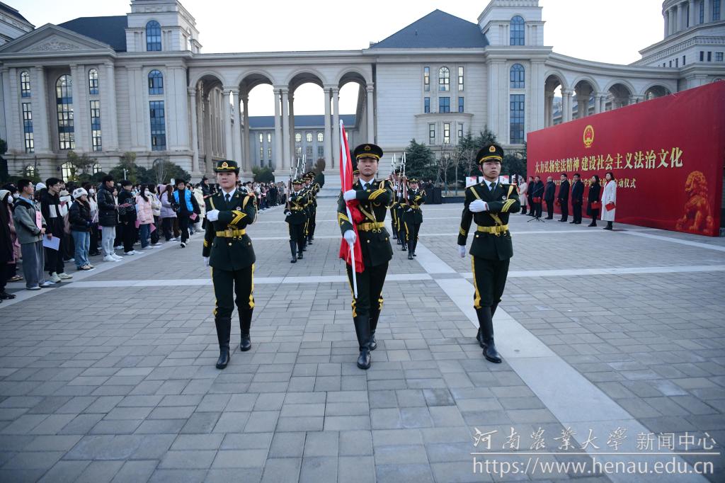 活动在庄严的升旗仪式中拉开帷幕。校党委宣传部负责人宣读了《河南农业大学2023年“宪法宣传周”系列活动实施方案》,详细介绍了系列活动的内容和要求。文法学院法律系教师徐轶博作为教师代表发言,她从弘扬宪法精神、传承中华优秀传统法律等三个方面鼓励师生积极参加普法宣传,为建设法治国家做贡献。文法学院2022级法学1班张秉全作为学生代表发言,他倡导大学生加入宪法宣传,牢记使命,贡献青春力量。