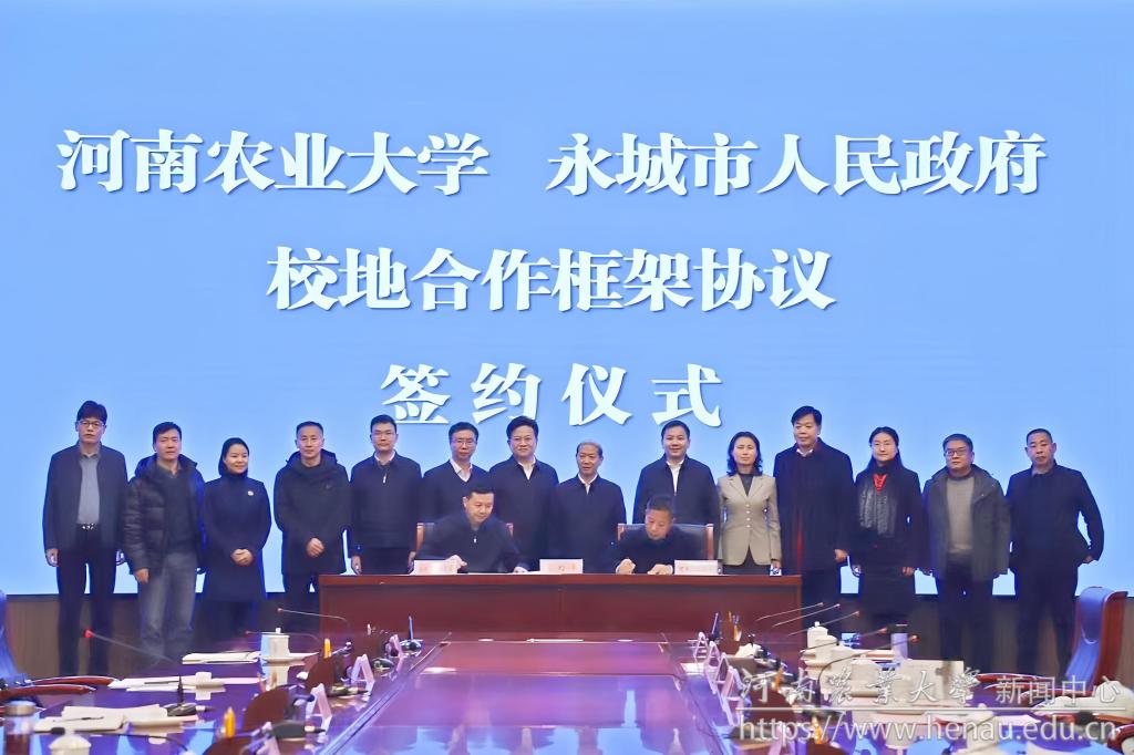 本网讯(通讯员 王春丽)12月27日,学校与永城市举行战略合作协议签约仪式。校长介晓磊,学术副校长汤继华,永城市委书记曾凯,市委副书记、市长刘建龙,市委副书记常忠伟,市委常委、市委办主任蒋清伟,市政府党组副书记梁廷振、副市长贾晓晖出席会议。校长办公室、社会服务处、农学院、风景园林与艺术学院、植物保护学院、园艺学院、食品科学技术学院相关负责人,规划设计院有限公司负责人,永城市市直有关单位的负责同志参加了会议。会议由刘建龙主持。