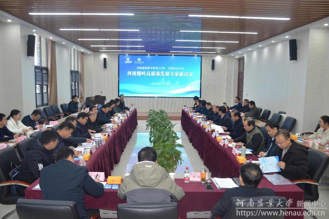 本网讯(通讯员 任天宝)12月28日,河南烟叶高质量发展专家研讨会在我校龙子湖校区召开。校长介晓磊、河南省烟草公司总农艺师宋守晔出席会议。来自全省九个产烟地市烟草公司的主管领导与技术负责人,烟草学院相关负责人及专家教授参加会议。