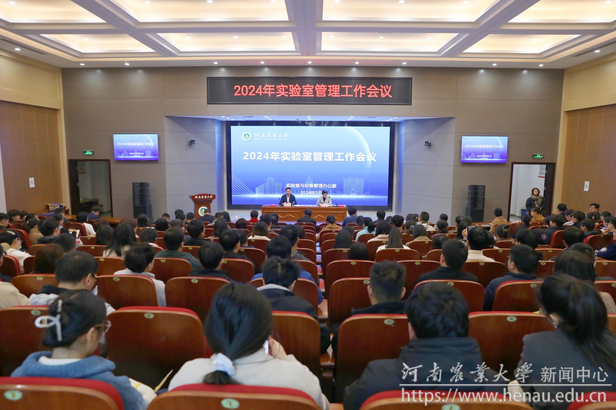 本网讯(通讯员 于固平)3月15日,我校在龙子湖校区召开2024年实验室管理工作会议。副校长刘晓永出席会议。保卫处、研究生院、教务处、科学技术处、社会科学处、后勤处等职能部门负责人,各学院分管实验室工作副院长、中心实验室主任、实验室负责人、实验室安全员、研究生代表和实验室与设备管理办公室全体职工参加会议。