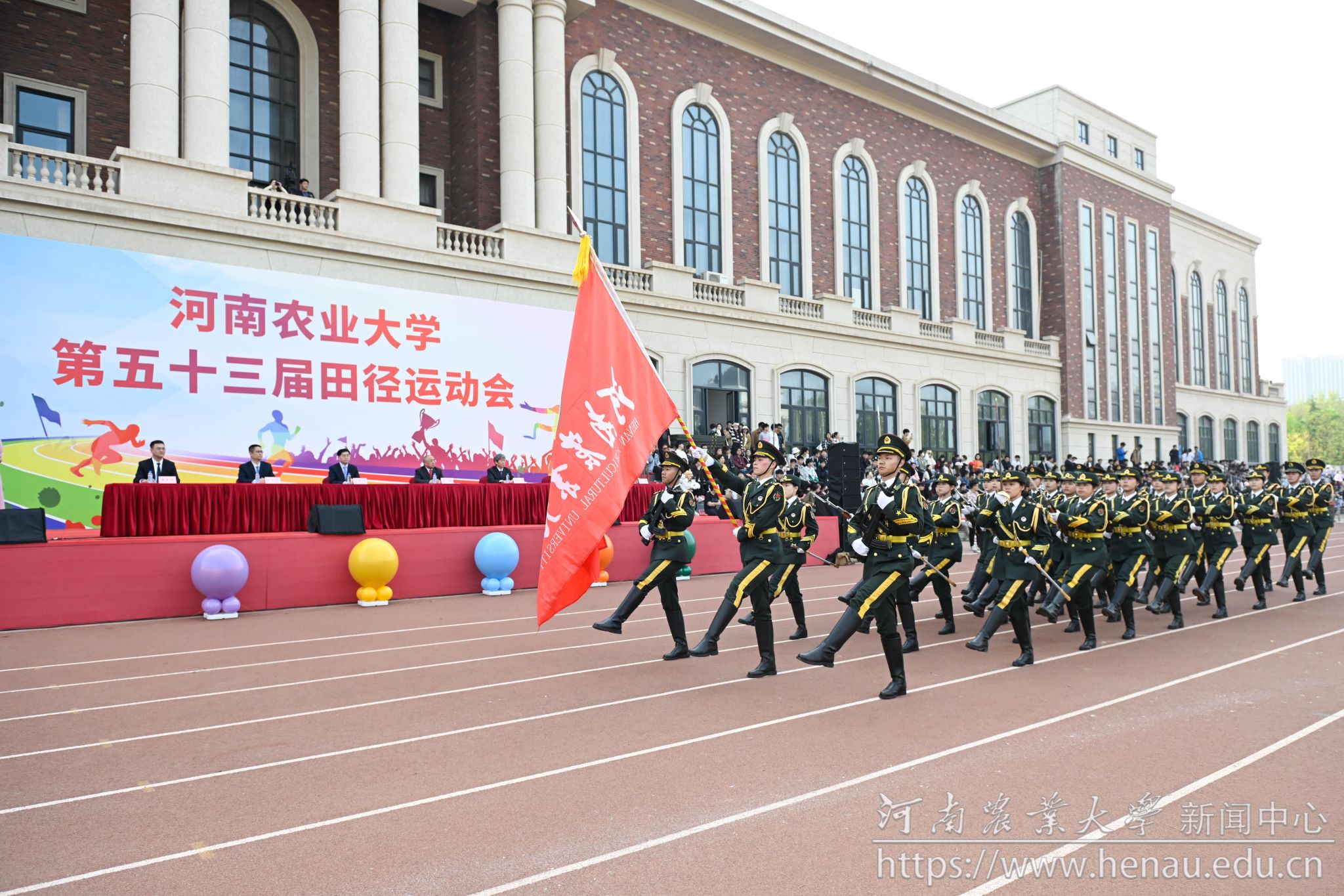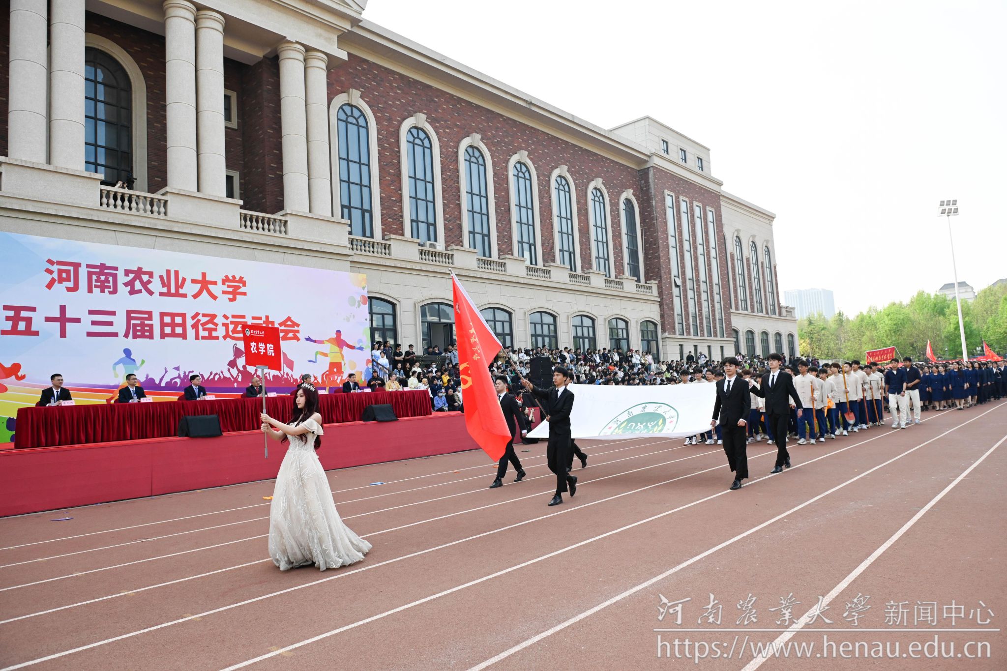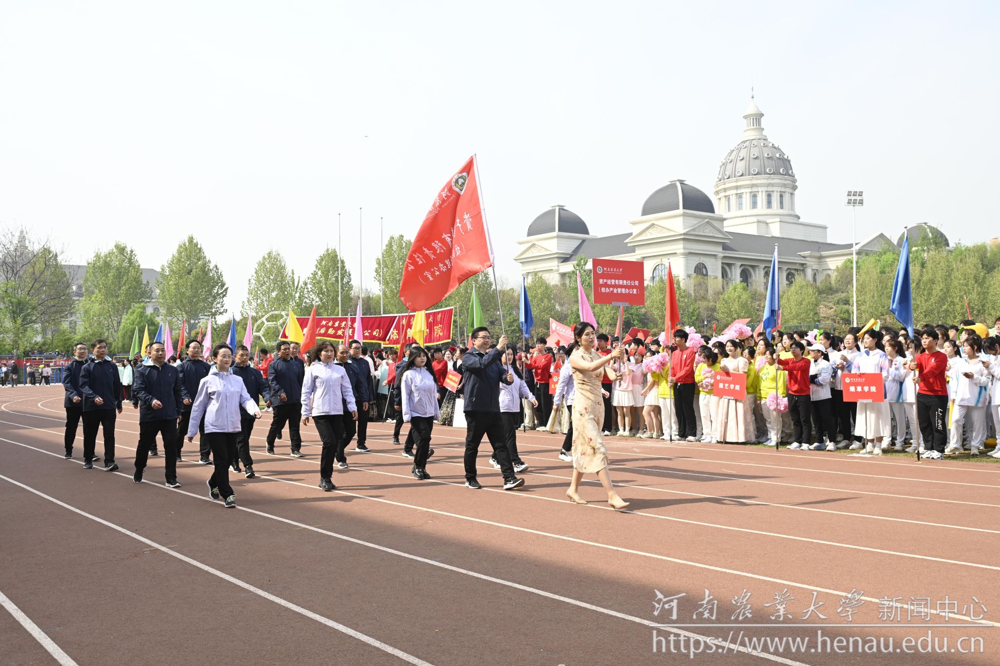 本网讯(记者 黄璞 杨钰晨)4月11日上午,河南农业大学第53届田径运动会在龙子湖校区体育场正式拉开帷幕。校党委副书记游舸,副校长杨喜田、郭战伟,副校长、校体育运动委员会主任赵鹏及有关单位负责人参加开幕式。来自全校各个单位的1806运动员将在4月11日至13日的3天时间里参加各个项目的角逐。