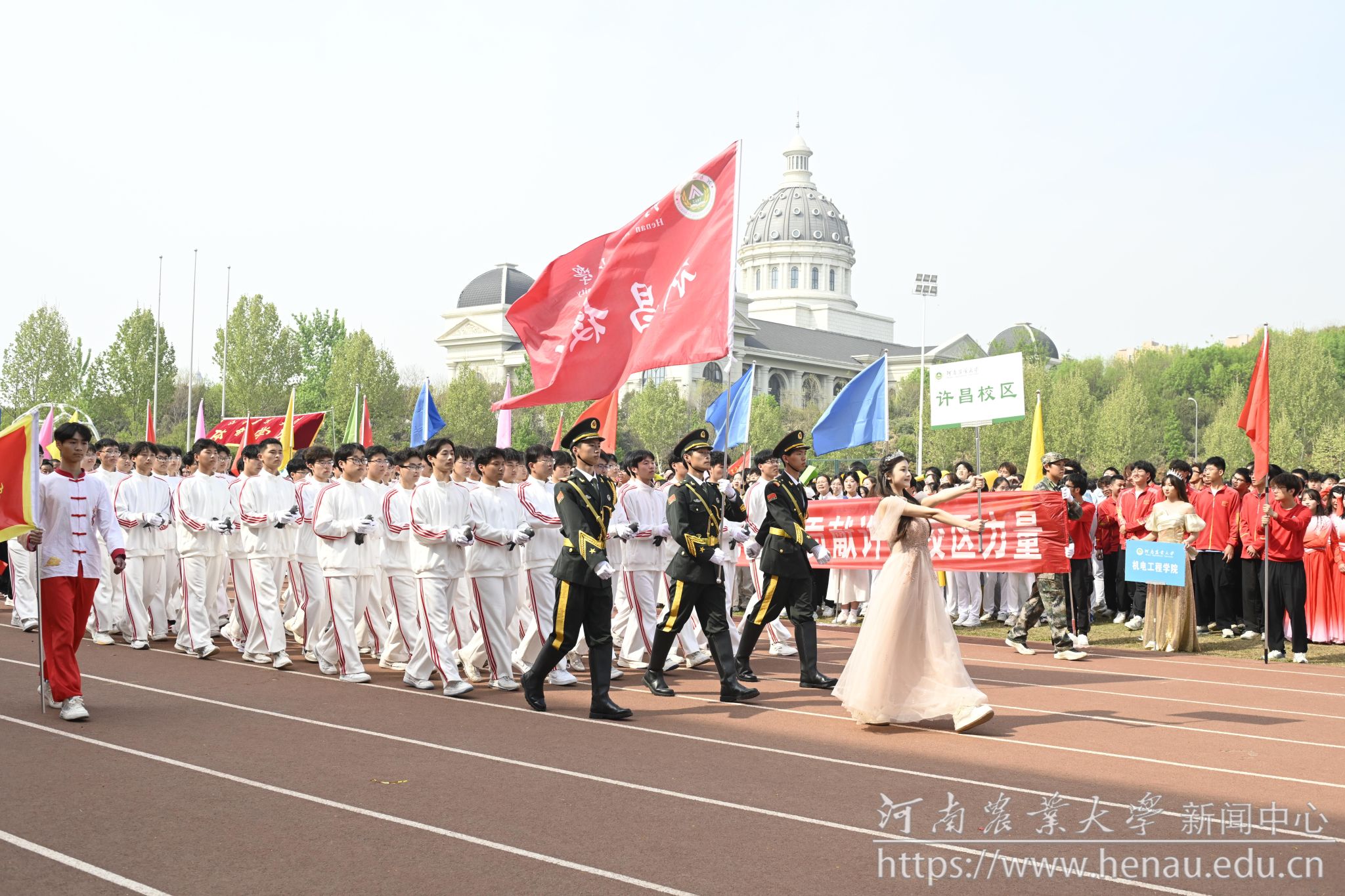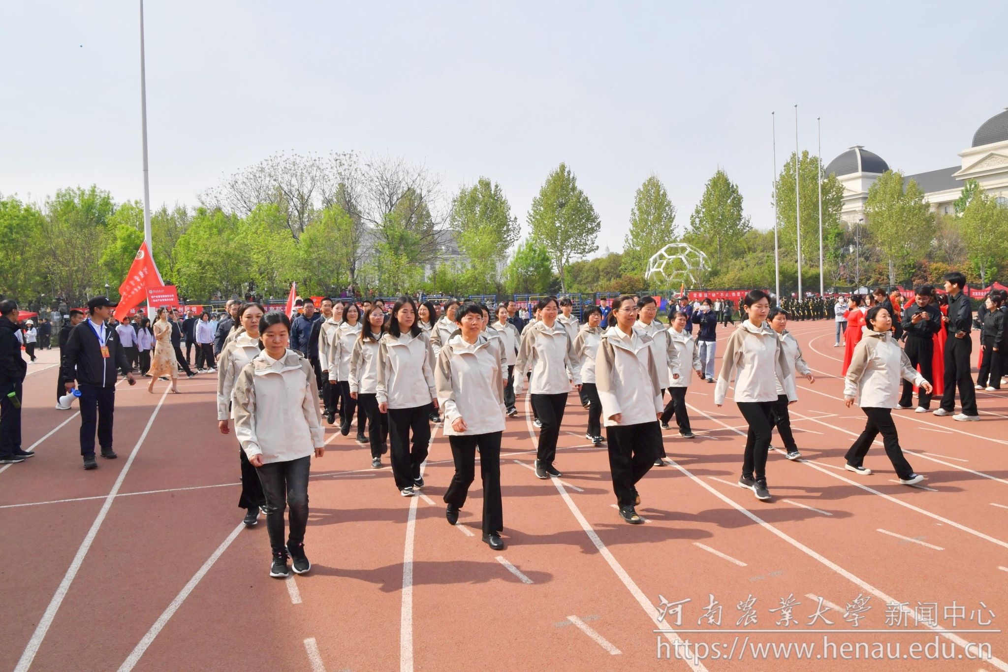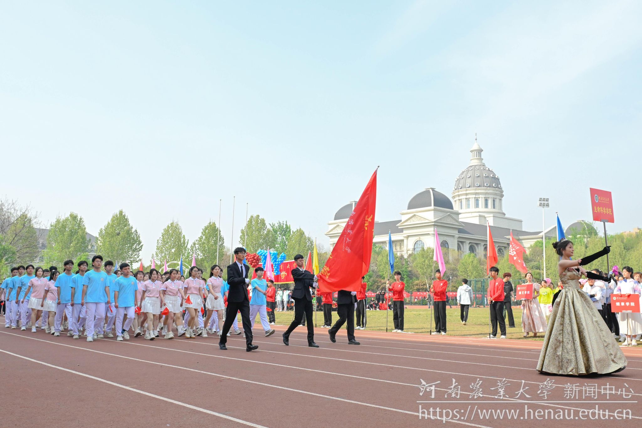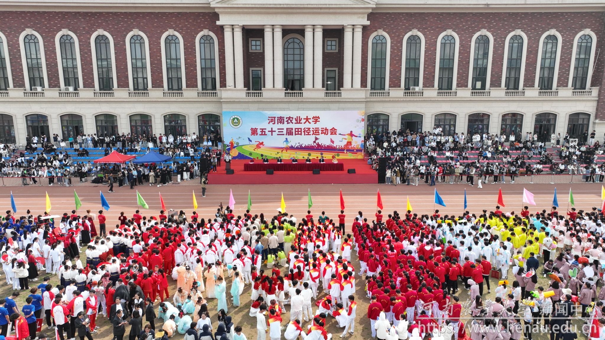 本网讯(记者 黄璞 杨钰晨)4月11日上午,河南农业大学第53届田径运动会在龙子湖校区体育场正式拉开帷幕。校党委副书记游舸,副校长杨喜田、郭战伟,副校长、校体育运动委员会主任赵鹏及有关单位负责人参加开幕式。来自全校各个单位的1806运动员将在4月11日至13日的3天时间里参加各个项目的角逐。