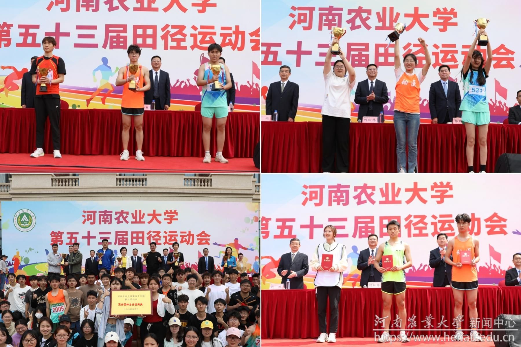 动物医学院、机电工程学院、信息管理科学学院获学生男子团体总分前三名。动物医学院、机电工程学院、许昌校区获学生女子团体总分前三名。动物医学院、机电工程学院、许昌校区、信息管理科学学院、动物科技学院、风景园林与艺术学院、农学院获学生混合团体总分前六名。后勤处(后勤发展总公司)、农学院、机关、资源与环境学院、许昌校区、植物保护学院获教工混合团体前六名。
