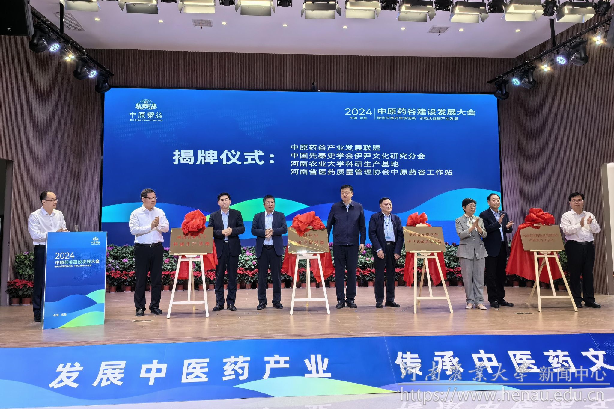 郭战伟代表学校和嵩县人民政府签署了校地合作框架协议。中原药谷产业发展联盟、中国先秦史学会伊尹文化研究分会、河南农业大学科研生产基地、河南省医药质量管理协会中原药谷工作站等单位进行了现场揭牌。