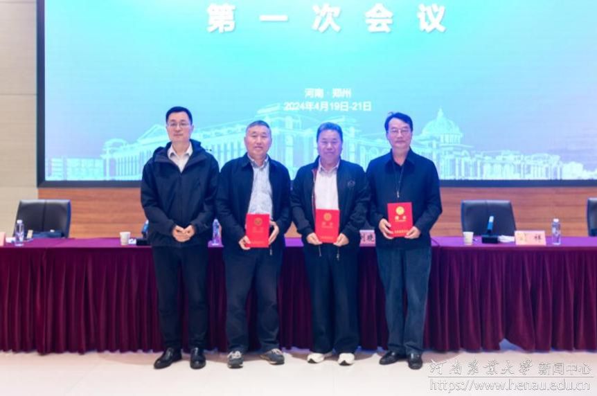 刘祥为兽医寄生虫病防治团体标准分委会主任委员、河南农业大学张龙现教授,副主任委员、南京农业大学李祥瑞教授,副主任委员、华中农业大学赵俊龙教授颁发聘书。