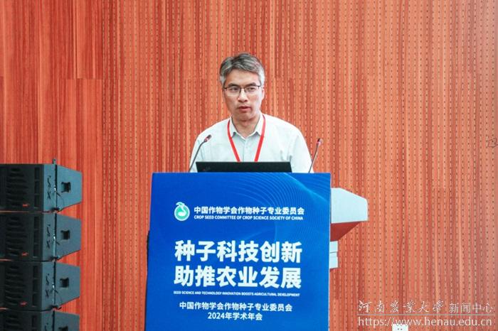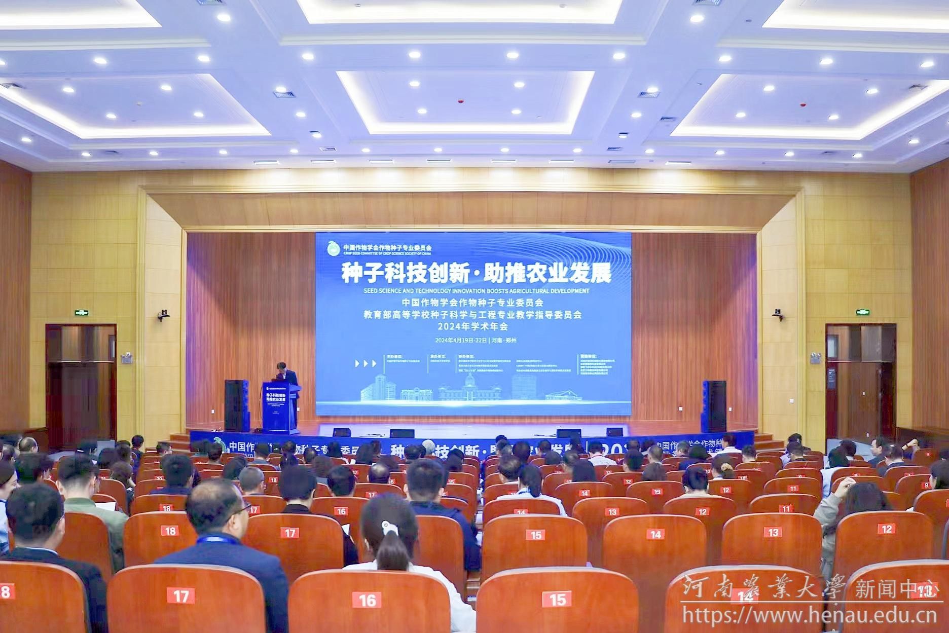 本网讯(通讯员 王子威)4月20日至21日,以“种子科技创新,助推农业发展”为主题的作物种子专业委员会学术年会在我校龙子湖校区召开。中国作物学会常务副秘书长徐琴,中国作物学会作物种子专业委员会主任、中国农业大学教授王建华,河南省教育厅高教处副处长季双丽,我校副校长刘晓永,学术副校长王道文、汤继华,以及省种业管理部门、学校各职能单位和农学院相关领导出席开幕式。来自全国从事种子相关技术研发和推广的30多家高校、科研院所和企业界代表,以及农学院师生代表近300人参会。