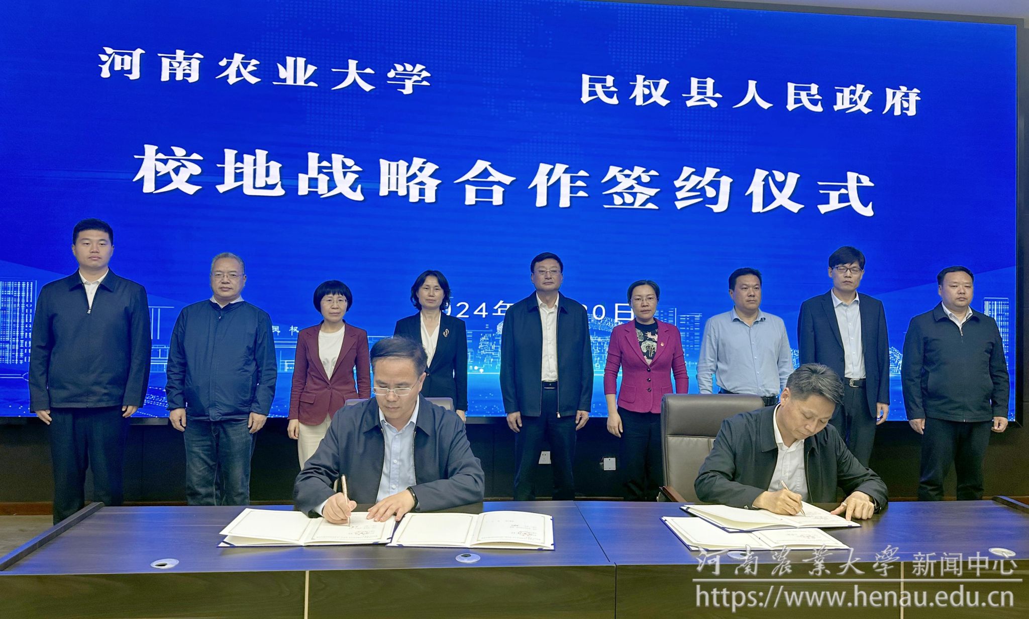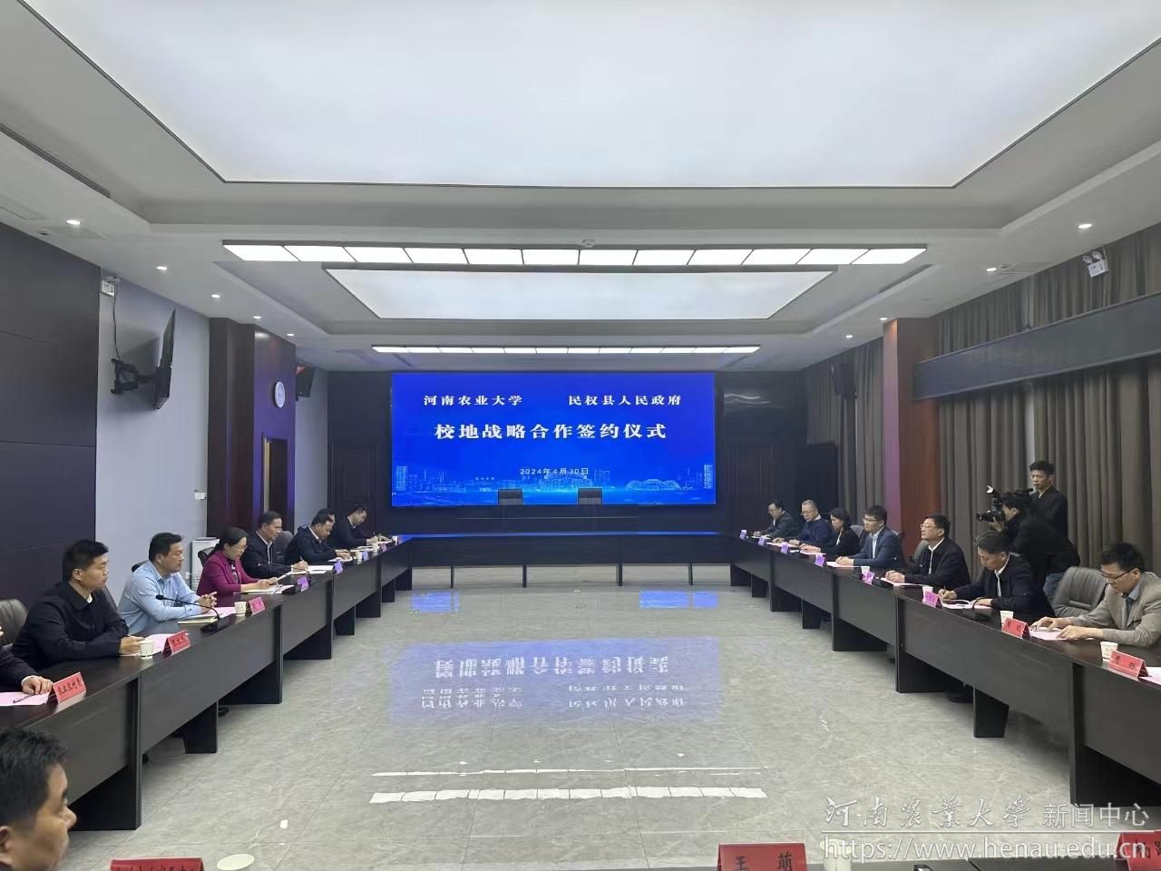 本网讯(通讯员 王萌)4月30日,我校与民权县人民政府校地合作框架协议签约仪式在民权县举行。校党委副书记、工会主席何松林,副校长刘晓永,民权县委书记王静娴,县委副书记、县长王景义出席会议。校党委办公室、校长办公室、社会服务处、农学院、植物保护学院、园艺学院、生命科学学院、食品科学技术学院相关负责人及专家,民权县相关职能部门负责人参加了会议。会议由王静娴主持。