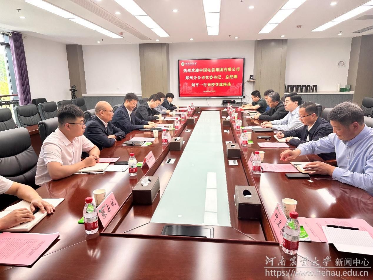 本网讯(通讯员 叶卫东)近日,中国电信集团有限公司郑州分公司党委书记、总经理刘平一行来校就推进校企合作座谈交流。副校长郭战伟出席座谈会。中国电信集团郑州分公司相关负责人,校长办公室、发展规划处、财务处、信息化办公室负责同志及相关人员参加座谈会。