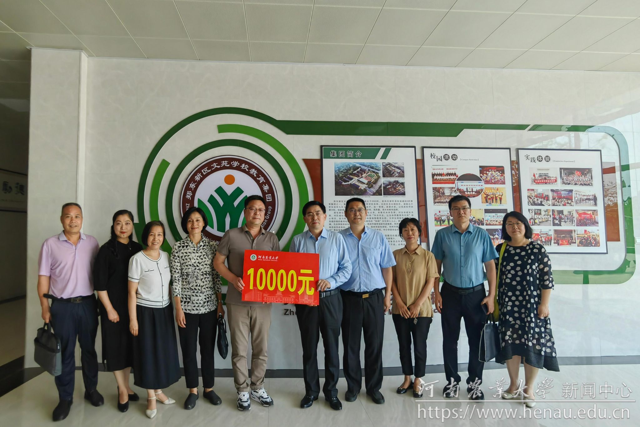 为加强与龙子湖校区周边中学和幼儿园的联系,切实帮助解决我校职工子女就近入学、入托问题,校领导、校办、校工会负责同志一行到郑东新区文苑学校、河南省第二实验中学、龙子湖幼儿园进行走访慰问,与郑东新区文苑学校教育集团总校长李永强等领导就开展校际共建合作进行了深入交流,向小朋友们送去节日的祝福和慰问金,向辛勤工作的教师们表示衷心的感谢。