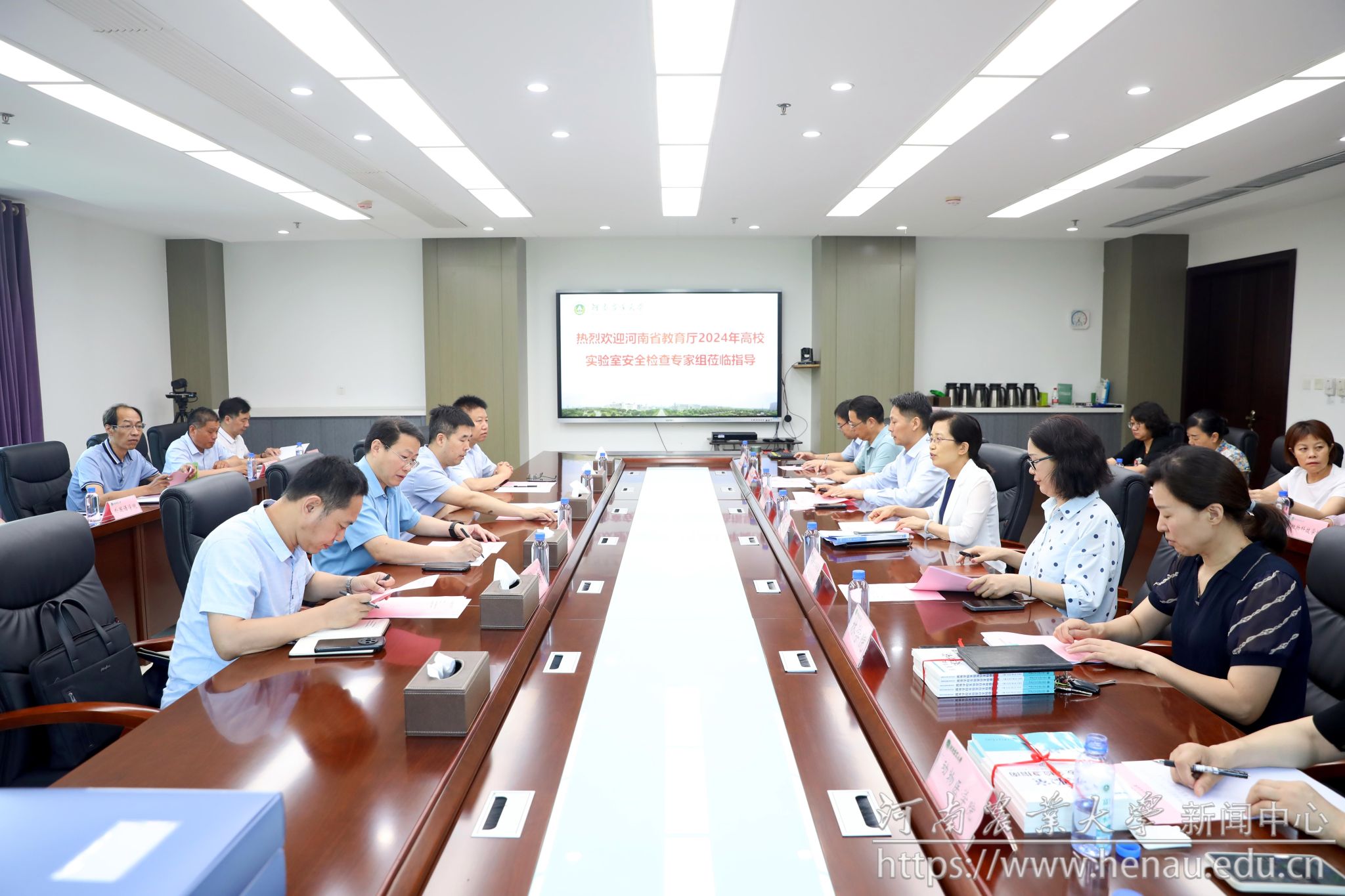 本网讯(通讯员 于固平 图片 黄璞)按照教育部关于切实维护高等学校安全稳定的统一部署及《河南省教育厅办公室关于开展高等学校实验室安全检查工作的通知》要求,6月17日,河南省教育厅高校实验室安全检查组组长马建宏一行4人来我校开展安全检查工作。副校长刘晓永出席安全检查工作汇报会。保卫处负责人、各学院实验室安全负责人、实验室与设备管理办公室相关人员参加汇报会。实验室与设备管理办公室主任杜莲珍主持会议。